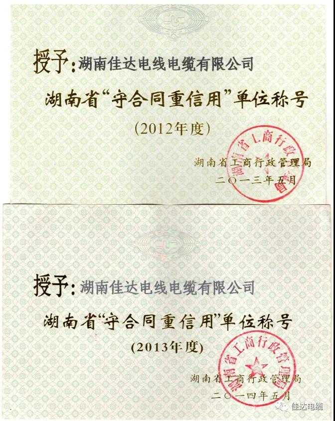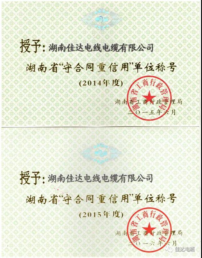 公司连续14年荣获湖南省“守合同•重信用”单位称号!